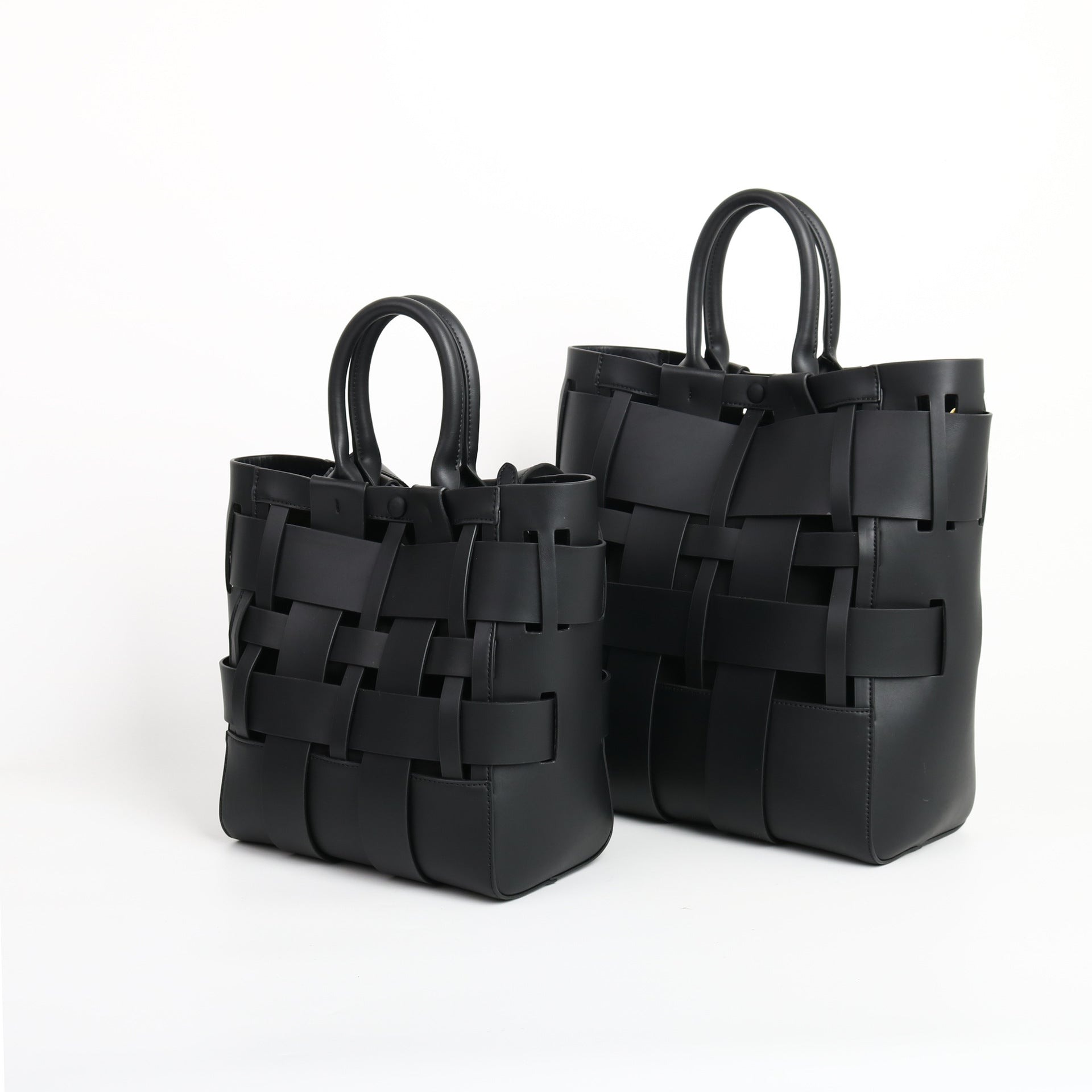 Crafted with precision and sculpted to stand out, the Noir Weave Satchel embodies the architectural elegance of Lorenzo Mantini. Wide interlaced leather panels create a bold, textured silhouette, giving classic minimalism a modern edge. Finished in a deep matte black and fitted with both smooth top handles and a detachable crossbody strap, this piece balances versatility with statement design. Spacious, structured, and unapologetically sleek — the Noir Weave Satchel is made for those who carry confidence, not compromise.